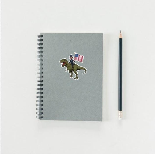 History meets prehistory in the most patriotic way possible! This hilarious sticker features Abraham Lincoln riding a T-Rex while proudly waving the American flag. SIZE:2.5X2.5 inch Durable, weatherproof vinyl with...