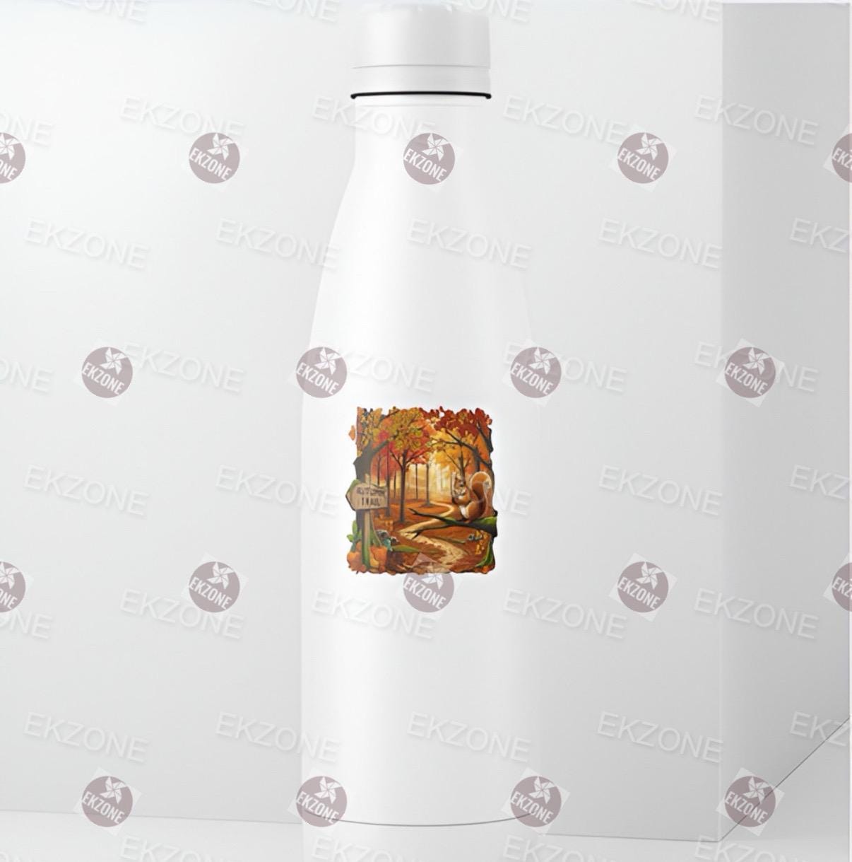 This captivating decal features a serene, illustrated scene of a sun-dappled forest trail winding through brilliant autumn foliage, complete with a cozy AUTUMN TRAIL sign and an adorable squirrel preparing for the harvest. It's the ideal accessory for hikers, nature enthusiasts, or anyone who appreciates the warm colors and cozy aesthetic of fall.