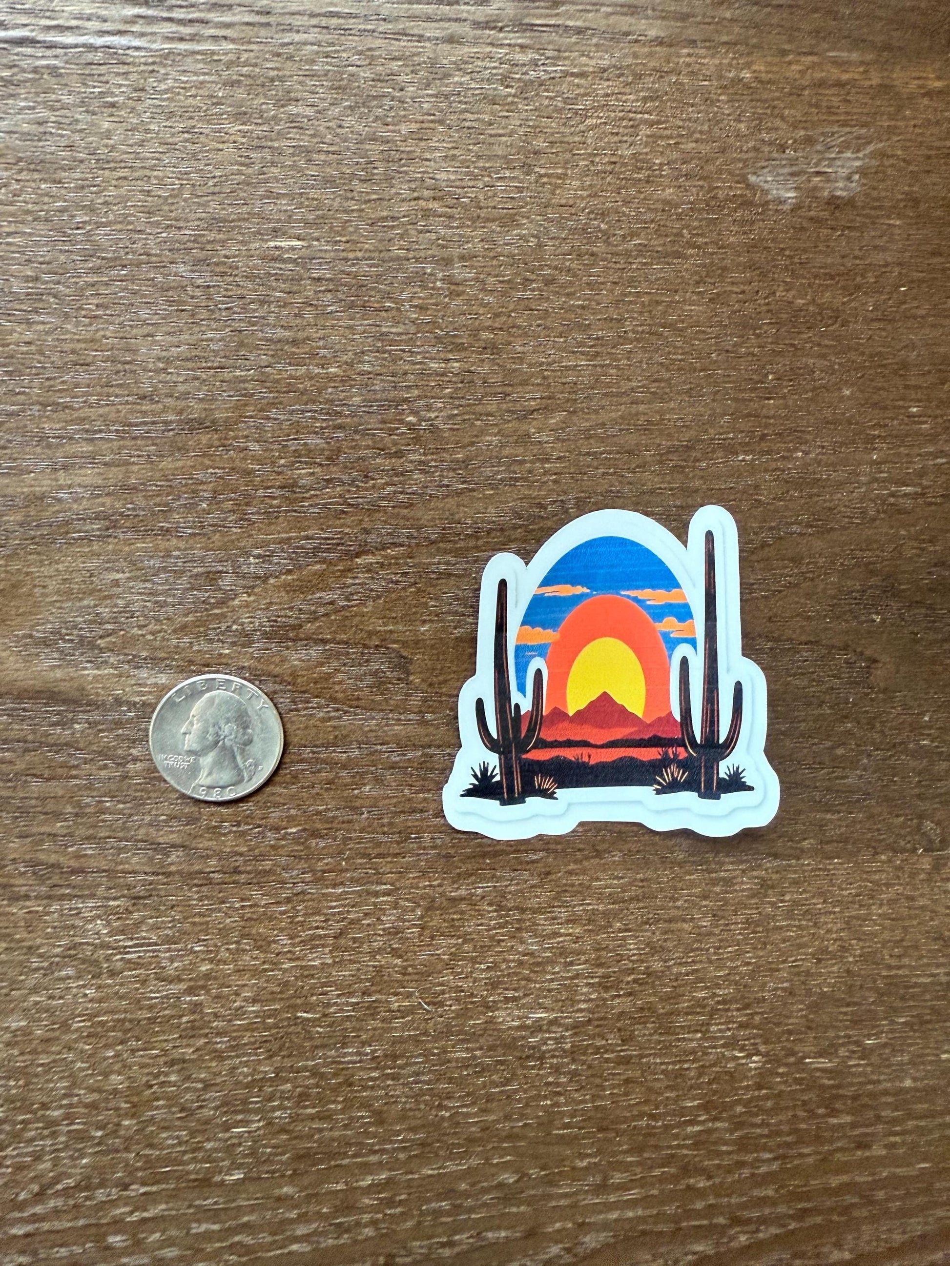 Capture the magic of the desert! This beautiful Circular Desert Sunset Sticker celebrates the stunning beauty of the Southwest!