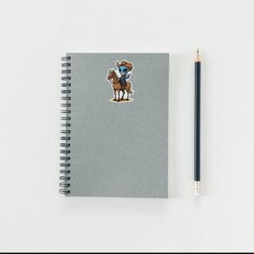 Yee-haw, Earthlings! Giddy up with our one-of-a-kind Cowboy Alien Riding Horse Sticker!