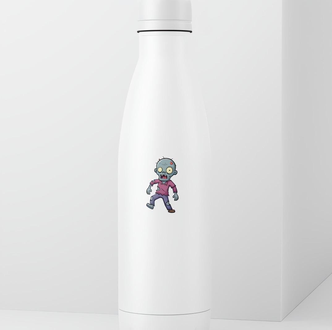This fun and vibrant decal features a classic, goofy zombie with wide eyes and tattered clothes, shambling along. It's the perfect accessory for anyone who loves zombies, Halloween, or simply appreciates a quirky and lighthearted take on the spooky season.