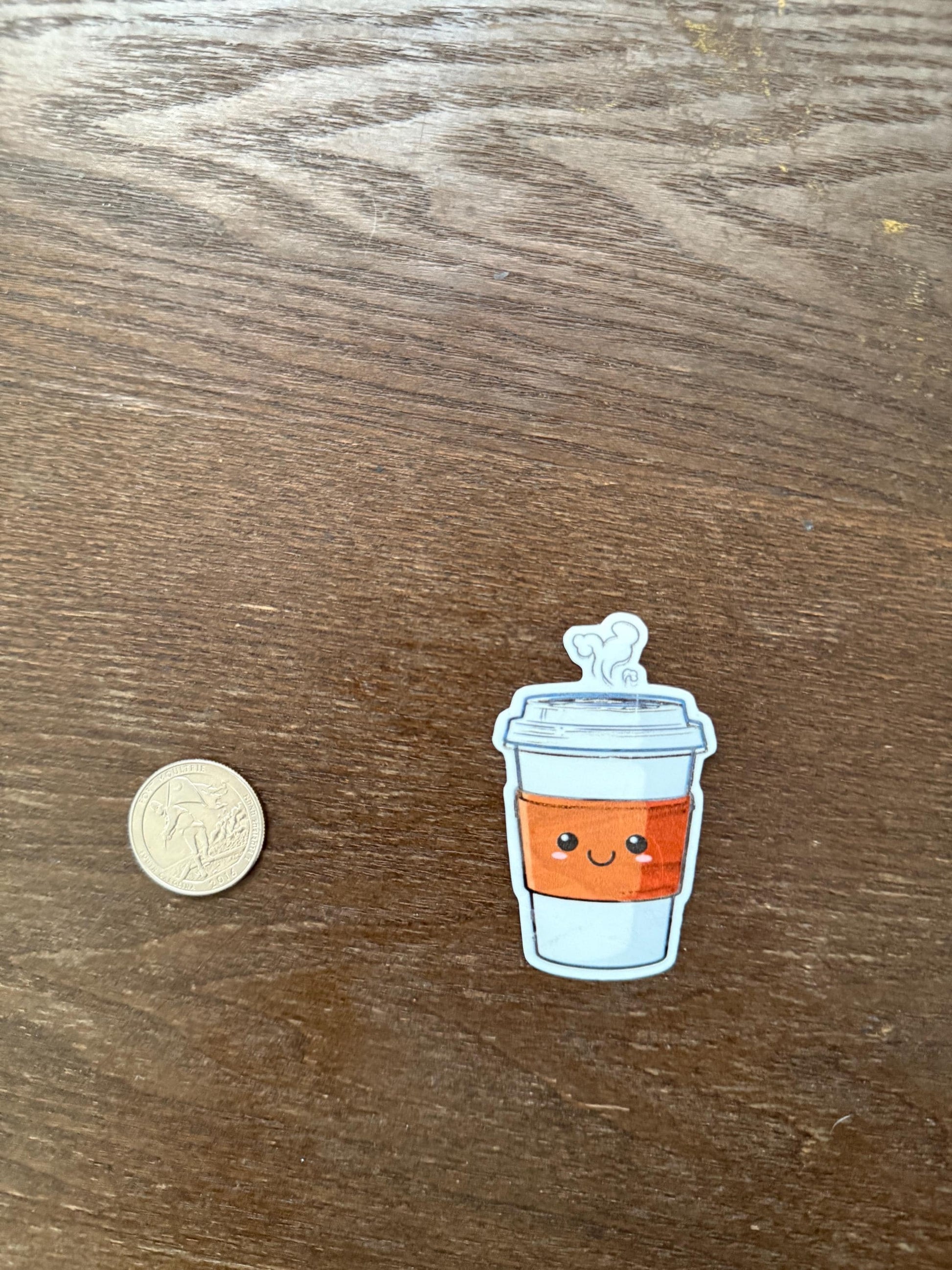 Wake up and smile! This adorable Cute Hot Coffee Sticker is the perfect accessory for your morning routine! SIZE:2.5X1.5 inch This captivating decal features a sweet, happy take-out coffee cup with a steaming lid, bringing a touch of wholesome, irresistible charm to your day. It's the ideal accessory for coffee enthusiasts, baristas, students, or anyone who appreciates the necessity of a good, hot cup of caffeine. Why you'll love this unique and charming decal: Adorable & Witty Design: Features a cute coffee cup character, instantly appealing to those who love kawaii and coffee. Vibrant Colors & Crisp Detail: The classic white cup, brown sleeve, and cheerful facial expression make this sticker truly pop. High-Quality & Durable: Made from premium, high-quality vinyl, this sticker is designed to last, resisting fading and scratches, and is waterproof – perfect for water bottles, laptops, phone cases, notebooks, or any smooth surface! Easy to Apply: Simply peel and stick to any clean, smooth surface – laptops, water bottles, journals, phone cases, and more! Perfect Gift for Coffee Lovers: An ideal present for baristas, coffee fanatics, friends, or anyone who appreciates unique, cute, and heartwarming gifts. Versatile Decor: Great for personalizing your gear, adding a touch of wholesome charm to your workspace, or simply showcasing your love for coffee!