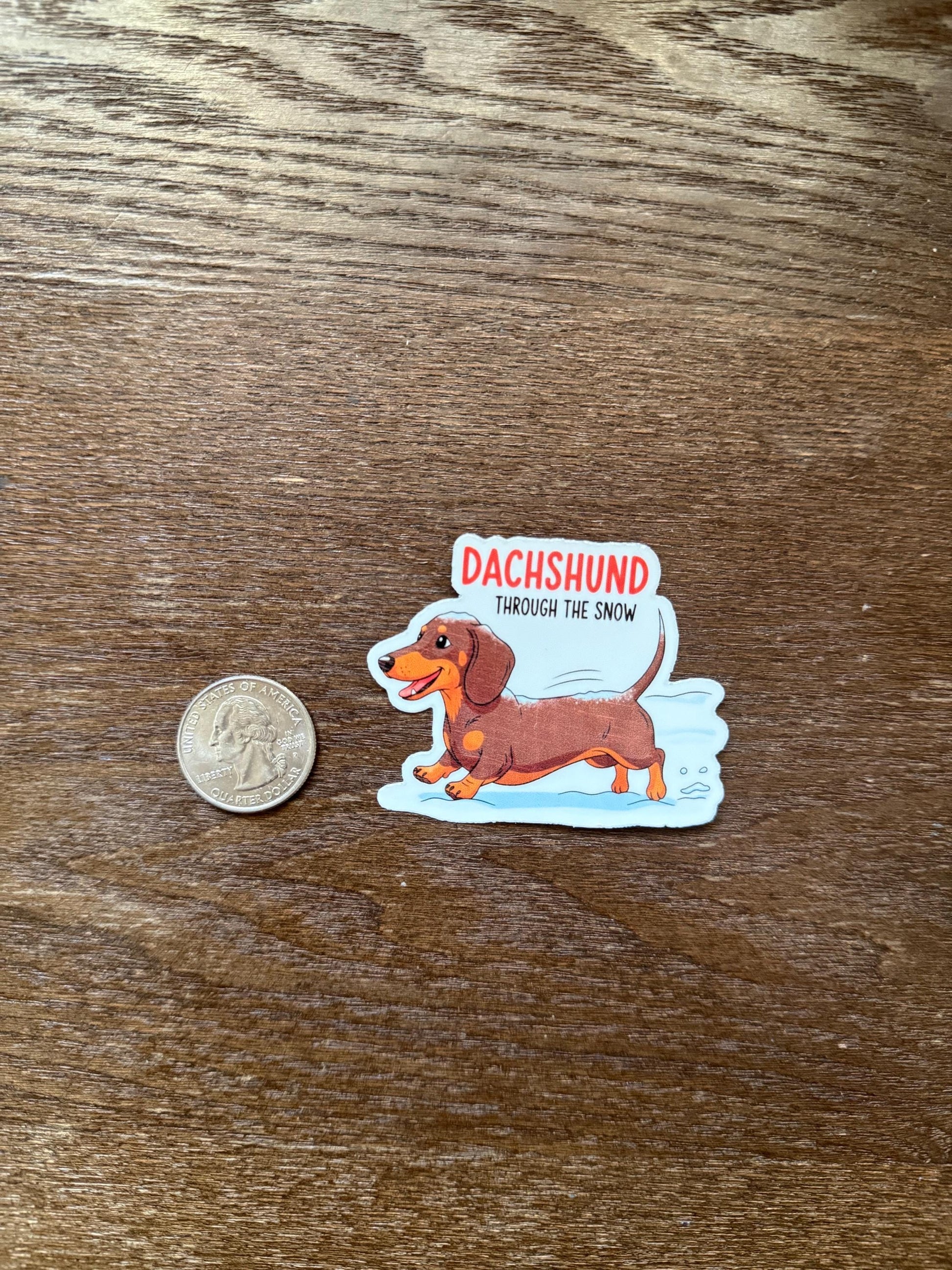 Vibrant Colors & Crisp Detail: The classic brown and tan dachshund, snowy ground, and clear, bold text make this sticker truly pop.