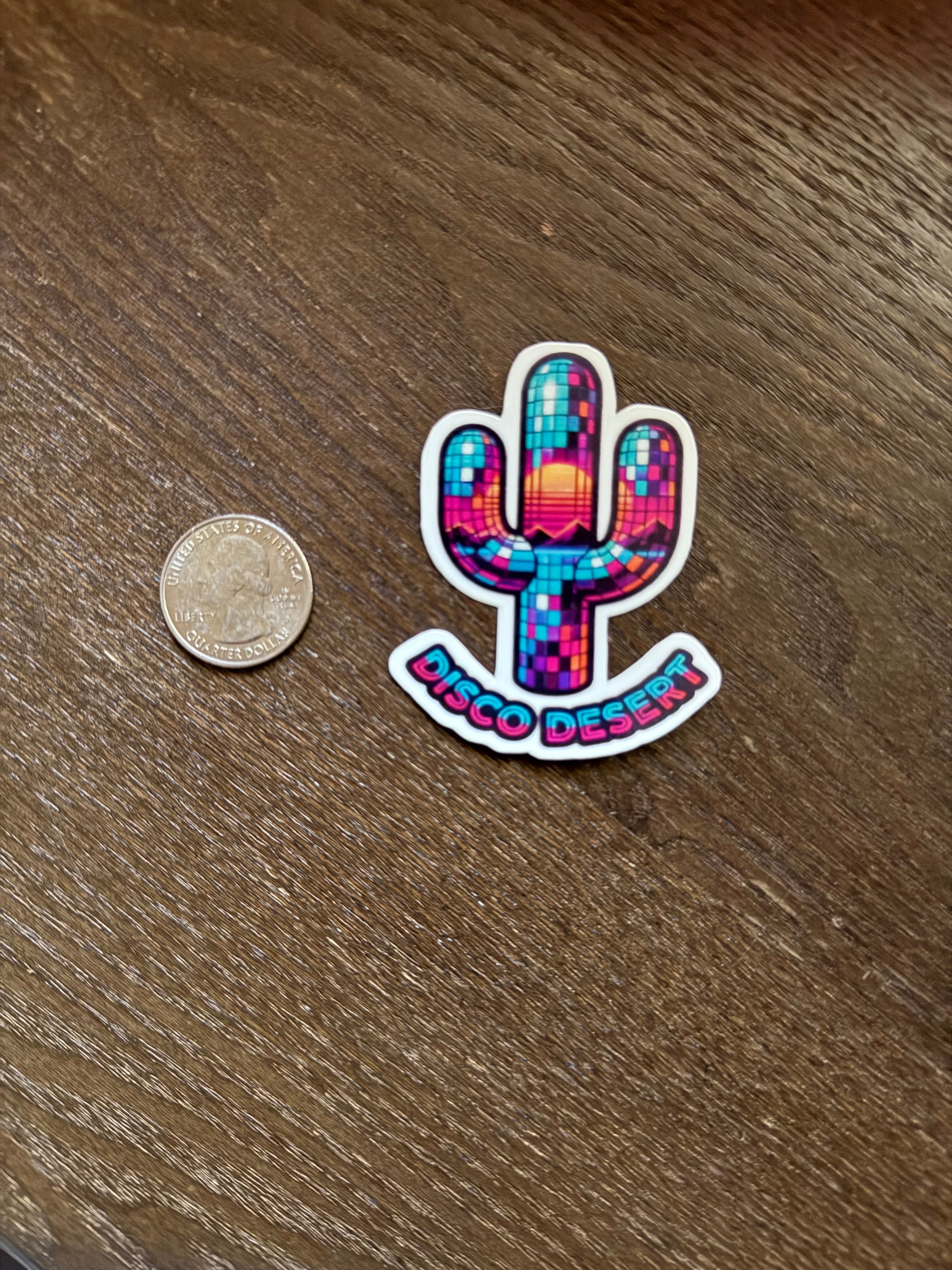 Our Disco Desert Sticker brings the festival vibes straight to your laptop. This unique design reimagines the classic Saguaro cactus as a shimmering disco ball, reflecting a neon purple sunset in its mirrored tiles. It’s the perfect accessory for your next music festival or desert road trip.