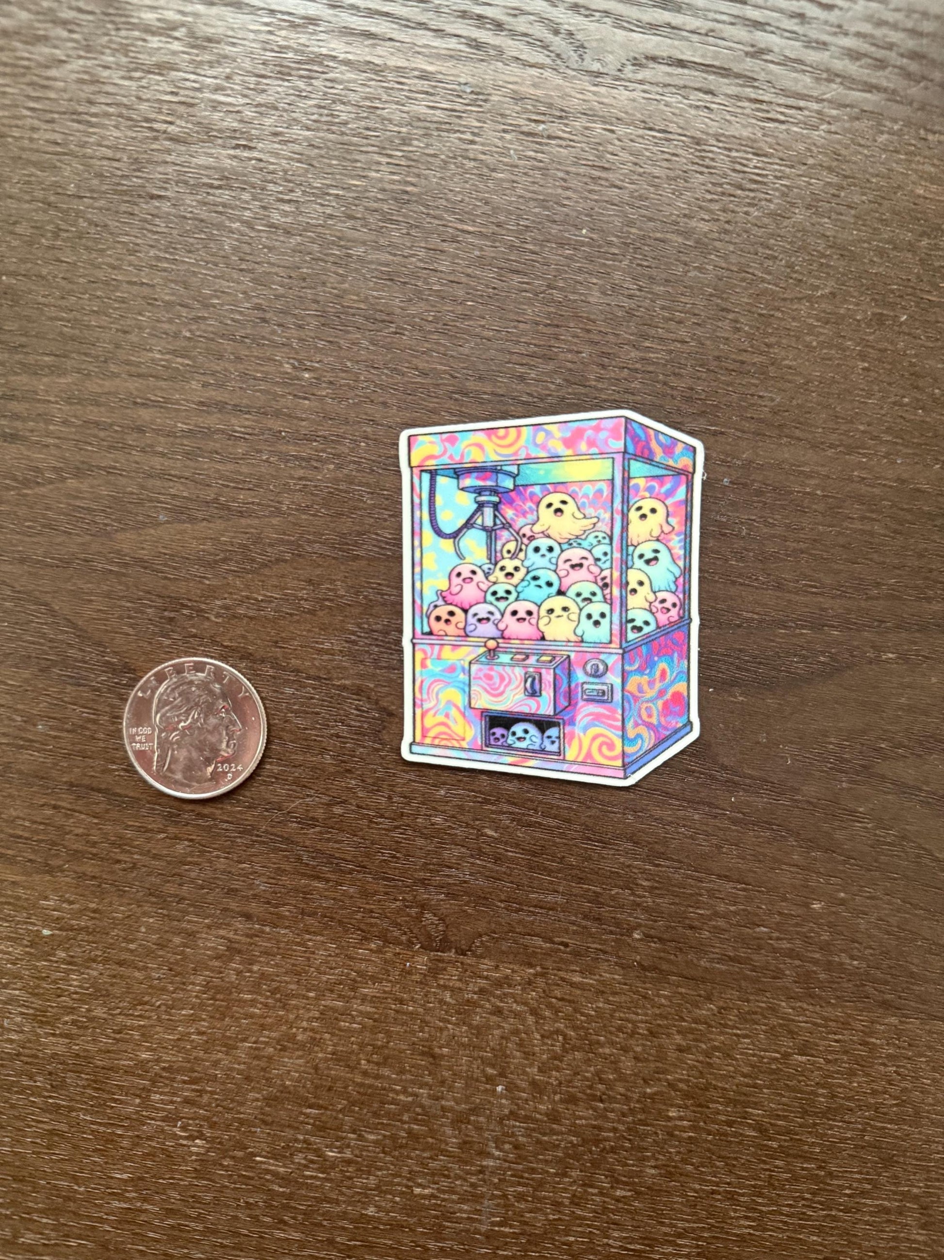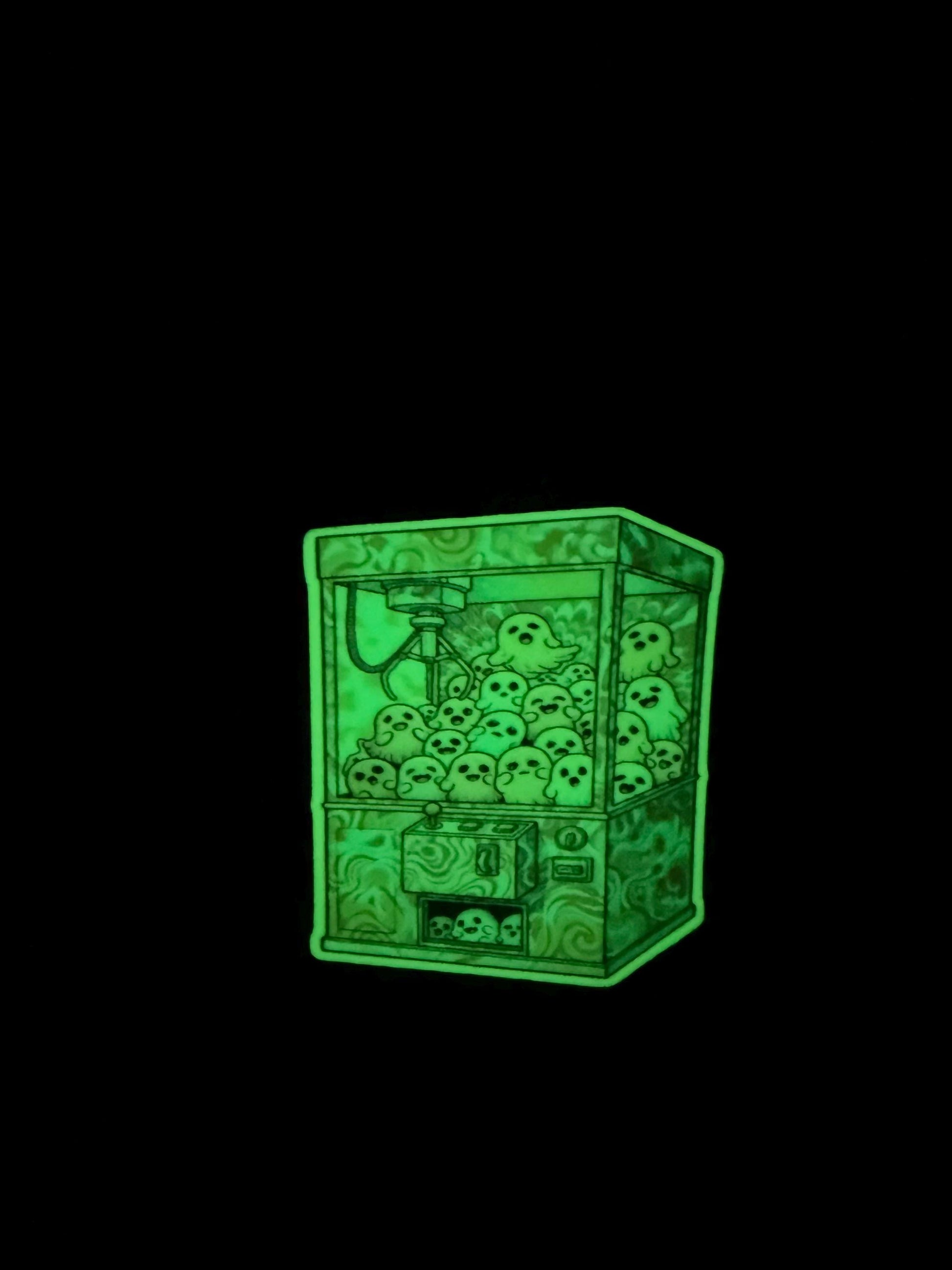 Get ready to snatch some spooky fun with our adorable Glow-in-the-Dark Ghost Claw Machine Sticker!