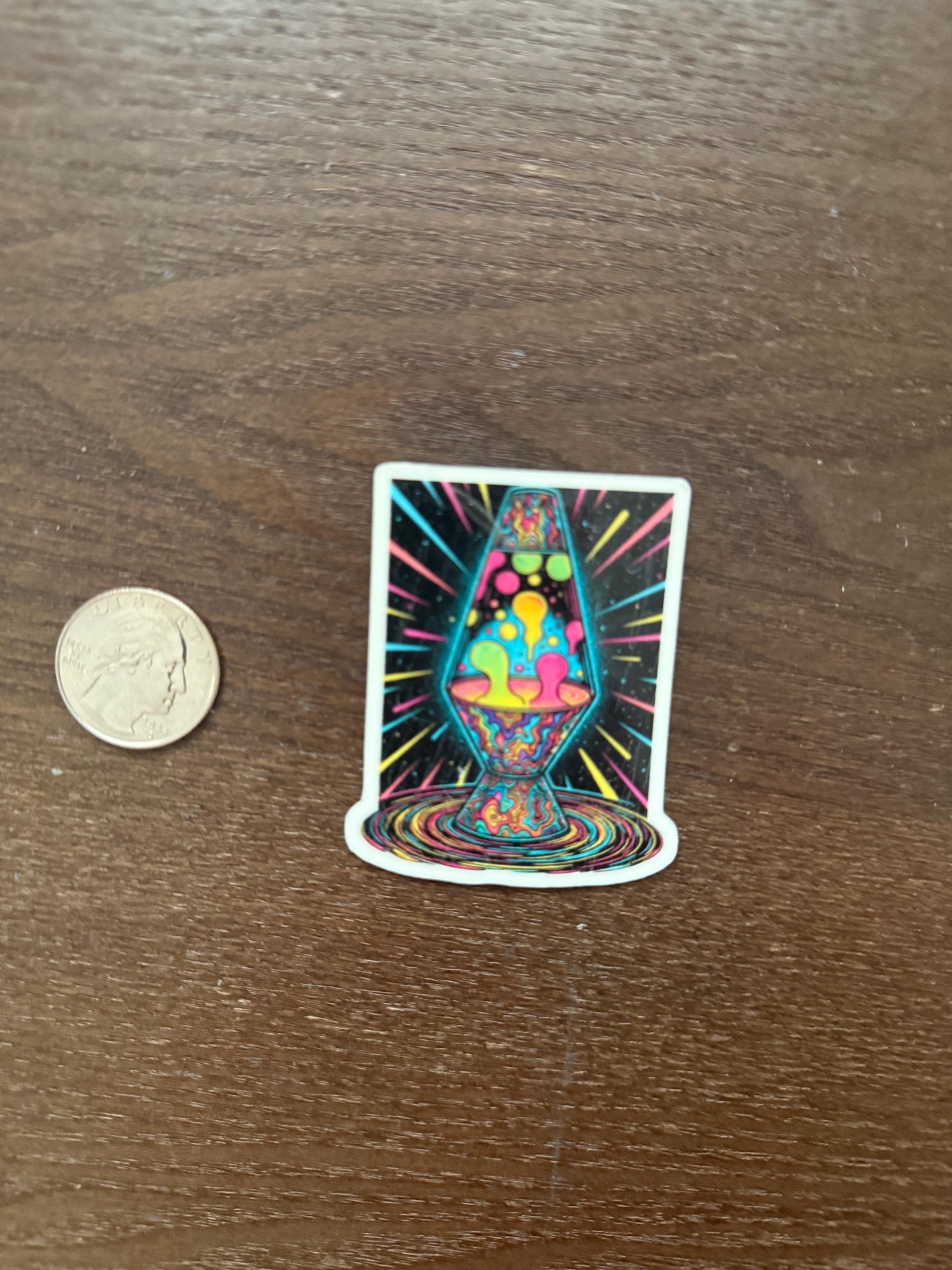 This captivating decal features a classic lava lamp design, bursting with vibrant, swirling colors and abstract patterns that evoke a true 70s and 80s aesthetic. It's a dazzling display in normal light, but the real magic begins when darkness falls – this sticker glows with an otherworldly luminescence, adding a super cool, trippy vibe to any space or item.