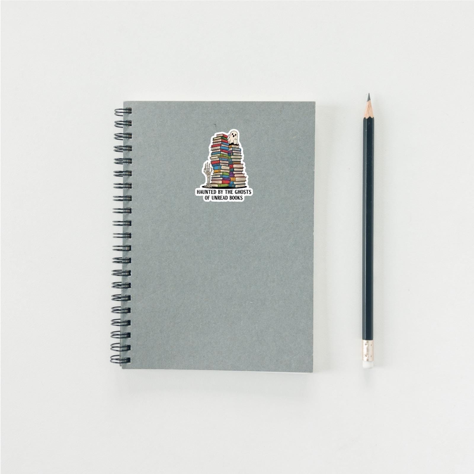 Do you feel it too? Haunted by the Ghosts of Unread Books Sticker perfectly captures the eternal struggle of every true bookworm!