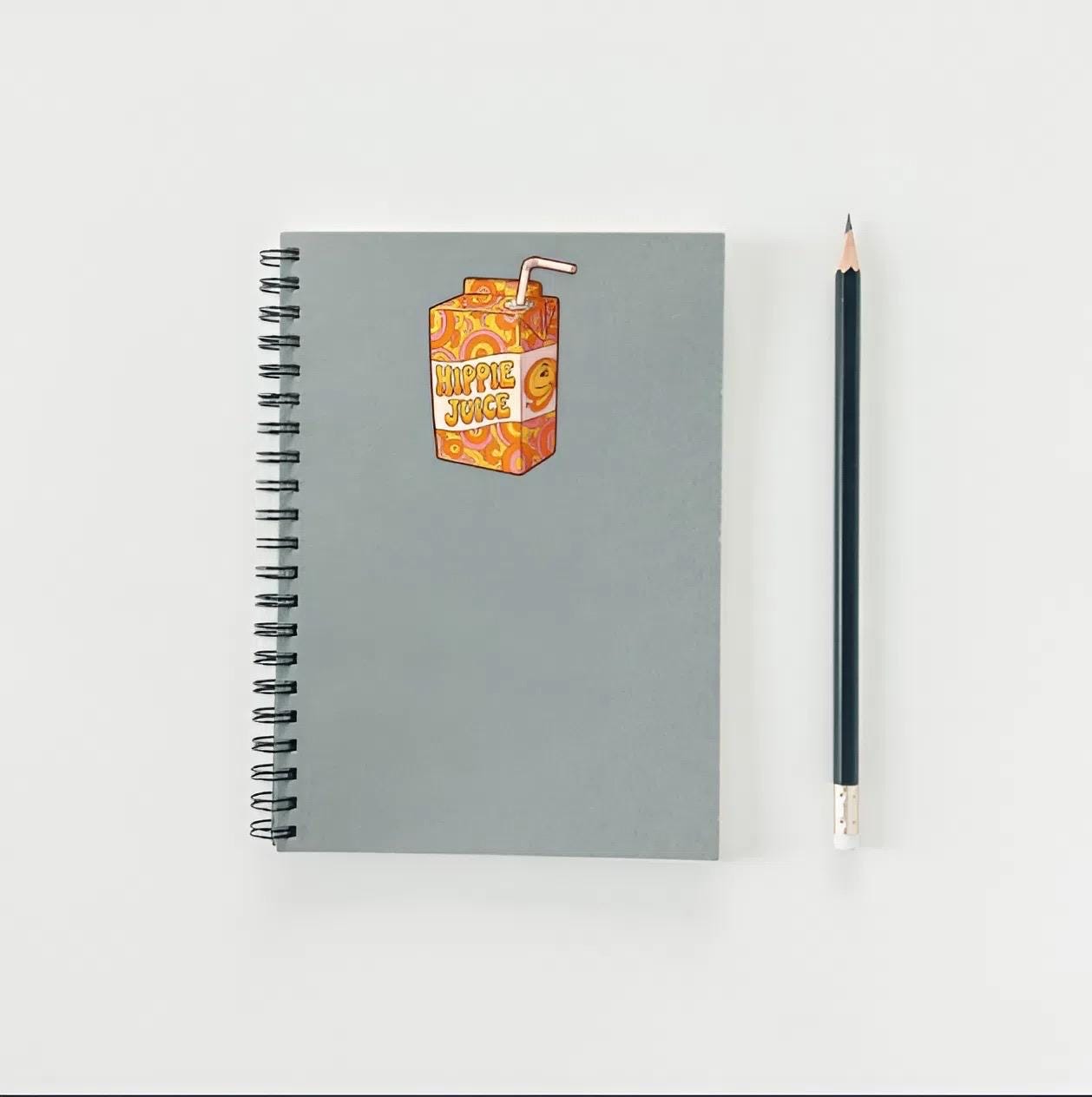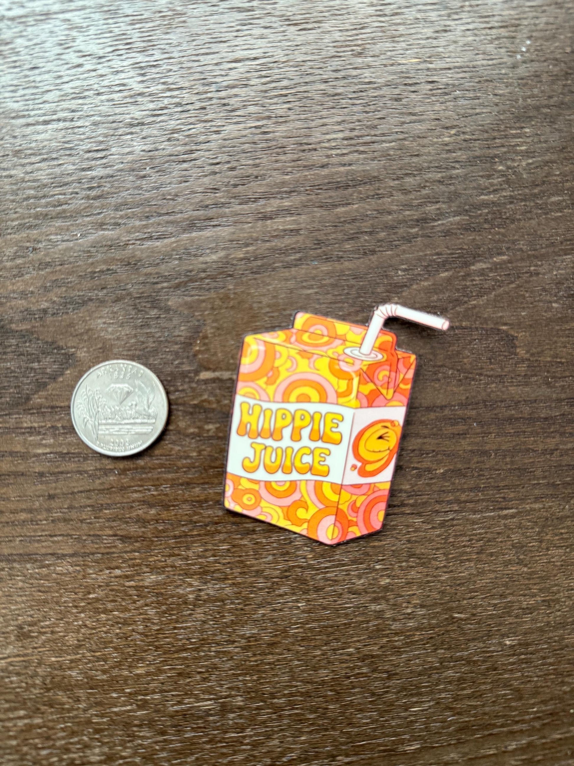 This vibrant and nostalgic decal features a classic juice box adorned with a psychedelic, groovy pattern in warm oranges, pinks, and yellows, boldly labeled "HIPPIE JUICE." It's the perfect accessory for anyone who loves retro aesthetics, the peace and love era, or simply appreciates unique, colorful, and fun art that brings back good memories.