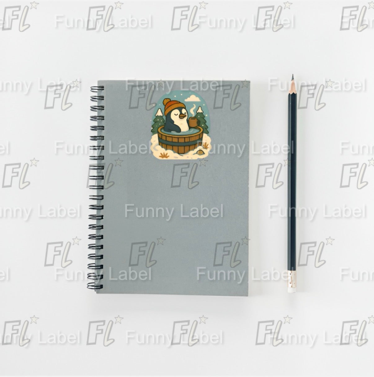 Take a deep breath and relax with our Holographic Cozy Penguin Sticker. This adorable design features a penguin living their best life—soaking in a steaming wooden hot tub while wearing a knit beanie and sipping a warm drink.