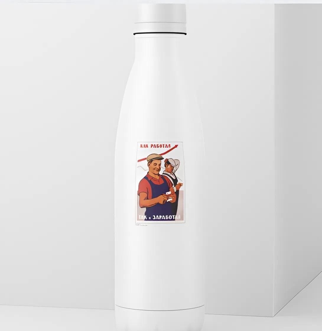 This compelling decal features a detailed print of a classic 1964 Soviet poster, depicting a smiling, productive worker and a less-than-successful worker, with the powerful Russian phrase "КАК РАБОТАЛ, ТАК И ЗАРАБОТАЛ" (How you worked, so you earned). It offers a unique glimpse into the historical messaging of the time, perfect for collectors, history enthusiasts, art students, or anyone who appreciates thought-provoking retro designs.