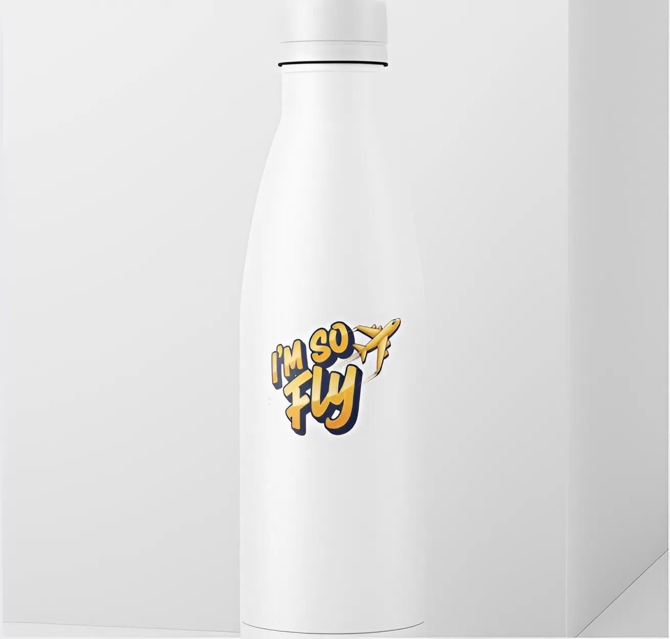 Clever & Positive Design: Features a cool airplane with a witty "I'm so fly" pun, instantly making you smile and radiating confidence.
