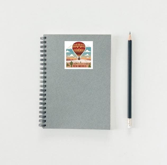 This captivating decal features a beautiful hot air balloon floating above a classic New Mexico desert scene, complete with iconic saguaro cacti and rugged mountains under a colorful sky. With a clear vintage travel poster aesthetic and the words "NEW MEXICO" at the bottom, it beautifully captures the magic of the state's famous desert beauty. It's the ideal accessory for travelers, New Mexico locals, or anyone who appreciates unique destination art and the spirit of the Southwest.