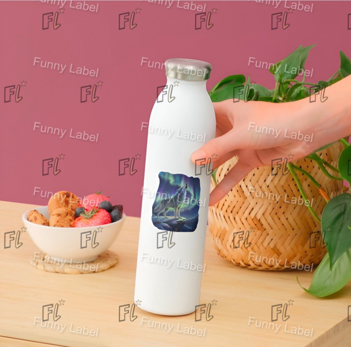 This Northern Lights Sticker captures a breathtaking moment: a lone wolf howling beneath the shimmering Aurora Borealis. But the real magic happens when the sun goes down. Printed on premium Glow-in-the-Dark vinyl, the sky lights up at night, mimicking the real Northern Lights right on your water bottle.