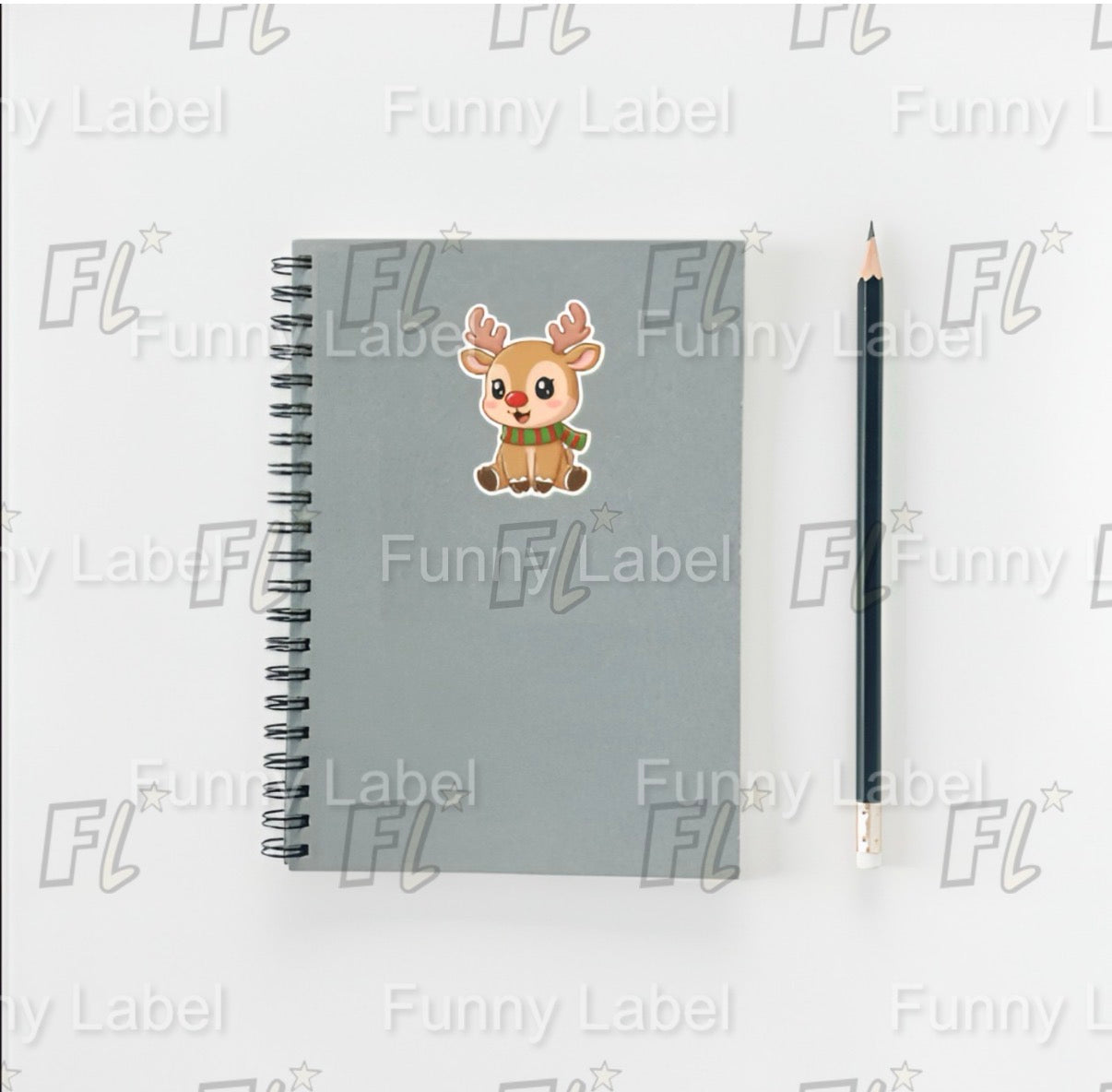 Spread holiday cheer with our adorable Rudolph Reindeer Sticker, featuring a cartoon-style reindeer with a red nose, big eyes, and a cozy green-and-red striped scarf.