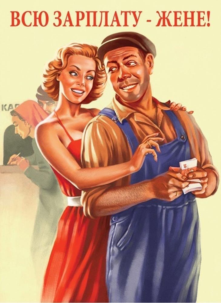 A fascinating look at historical social norms! This Vintage Soviet All Salary to the Wife Sticker is a unique piece of art.