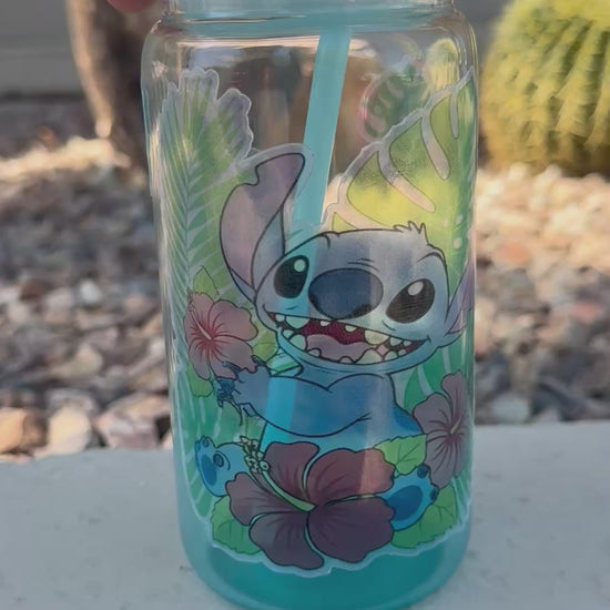 Add a touch of Aloha to your drinkware collection or surprise a Disney fan with this enchanting Stitch glass can tumbler!