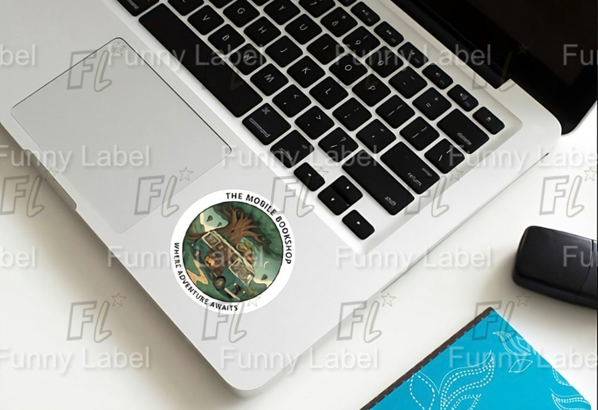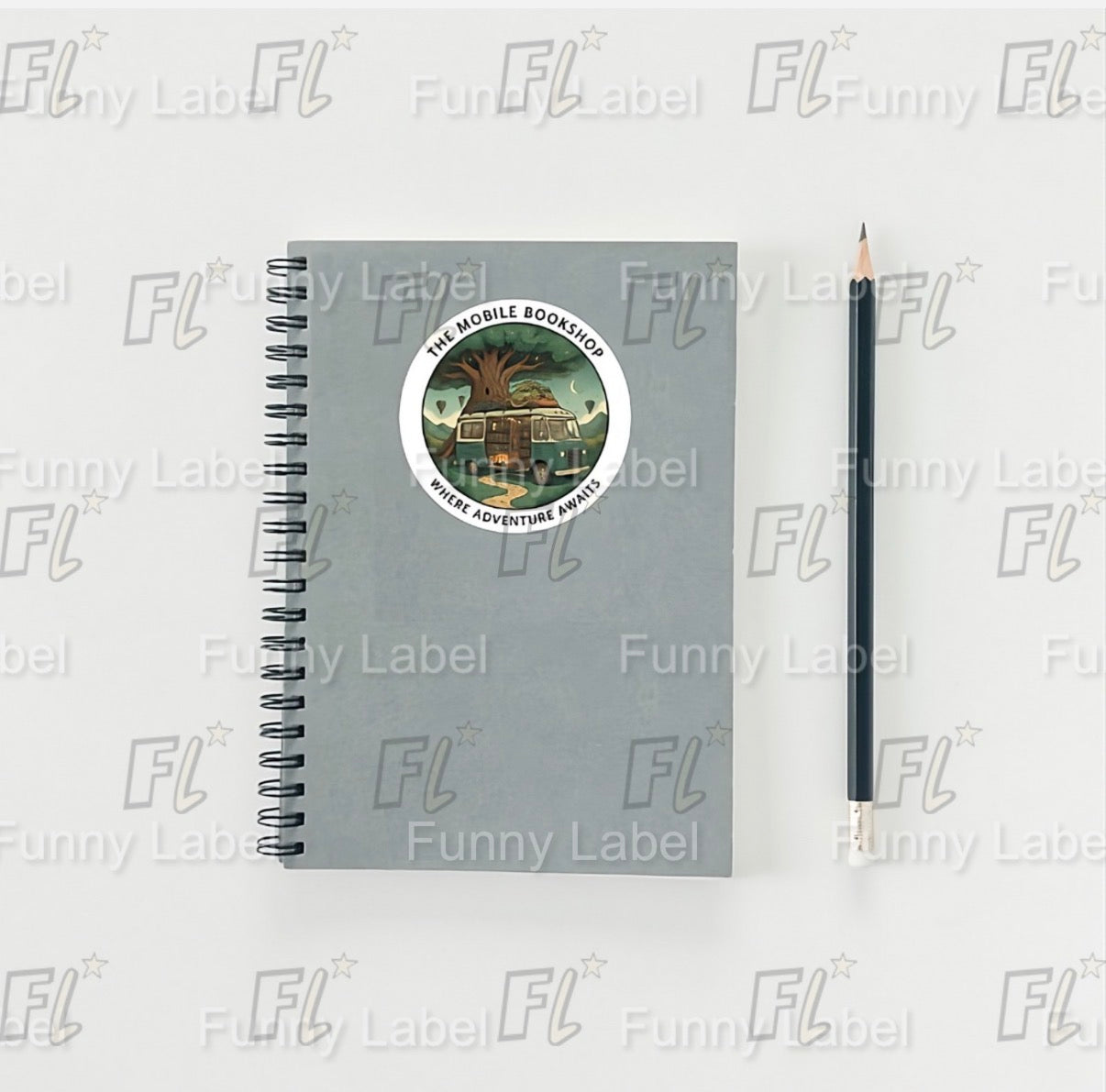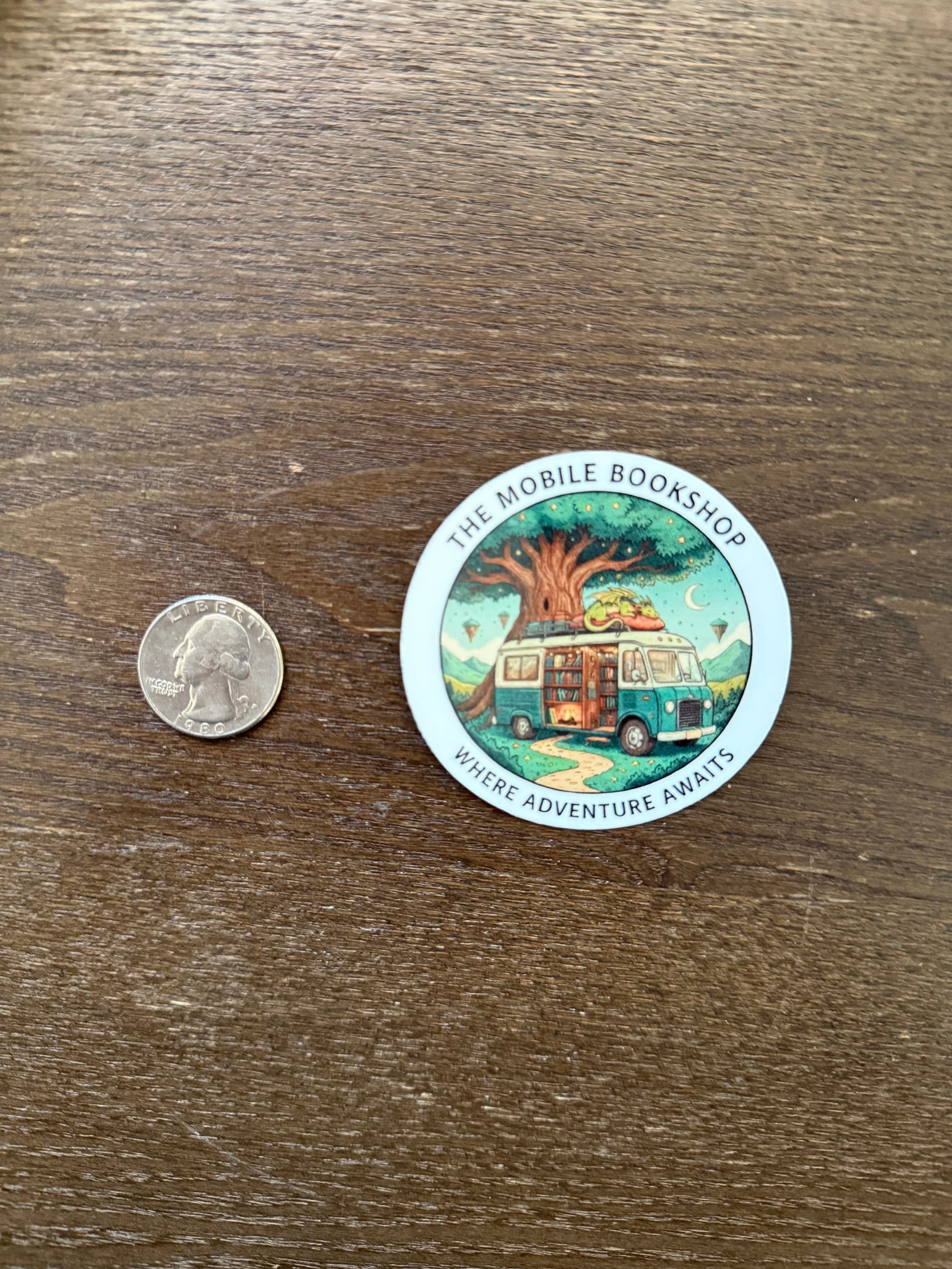 Take your love for books on the road with The Mobile Bookshop Sticker. This beautifully detailed illustration features a vintage green camper van transformed into the coziest rolling library imaginable—complete with a roaring fireplace inside!
